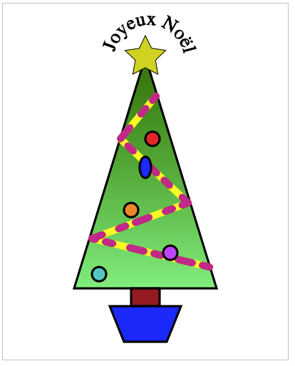 - Un des éléments devraient utiliser un gradient de couleur (p.ex. le vert du sapin dans l'image).